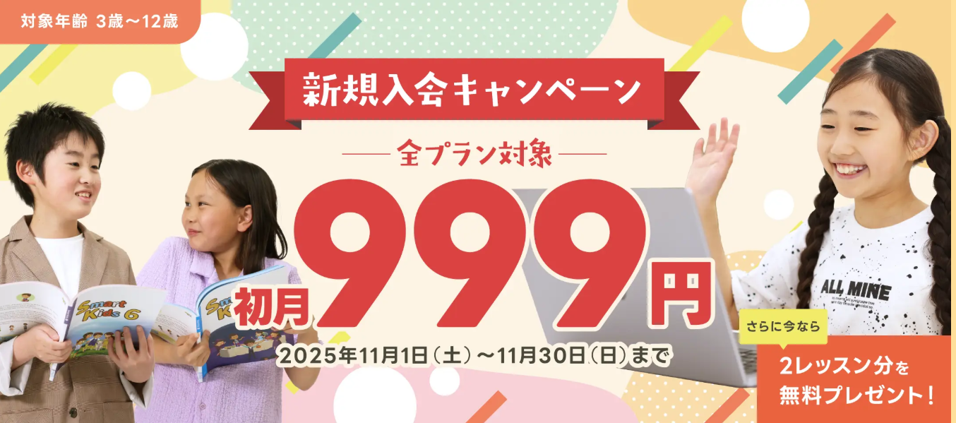 2025年11月1日~11月30日まで、全プラン対象初月999円!