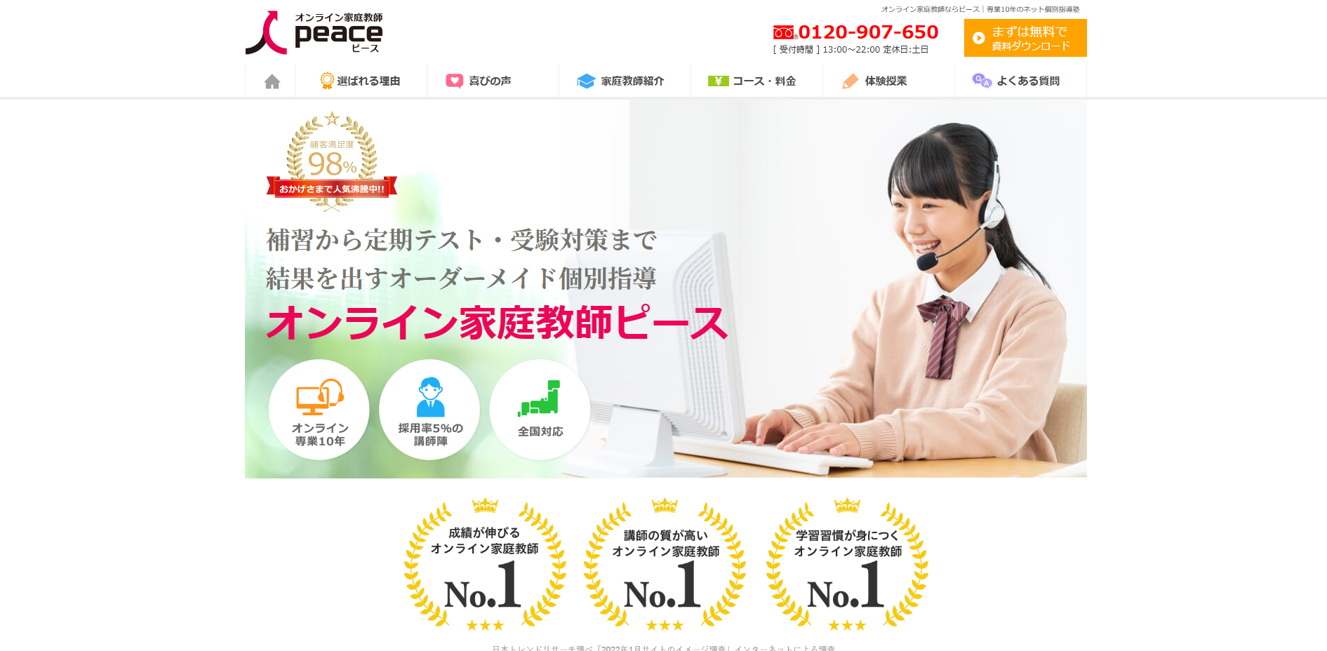 オンライン家庭教師ピースの公式サイト