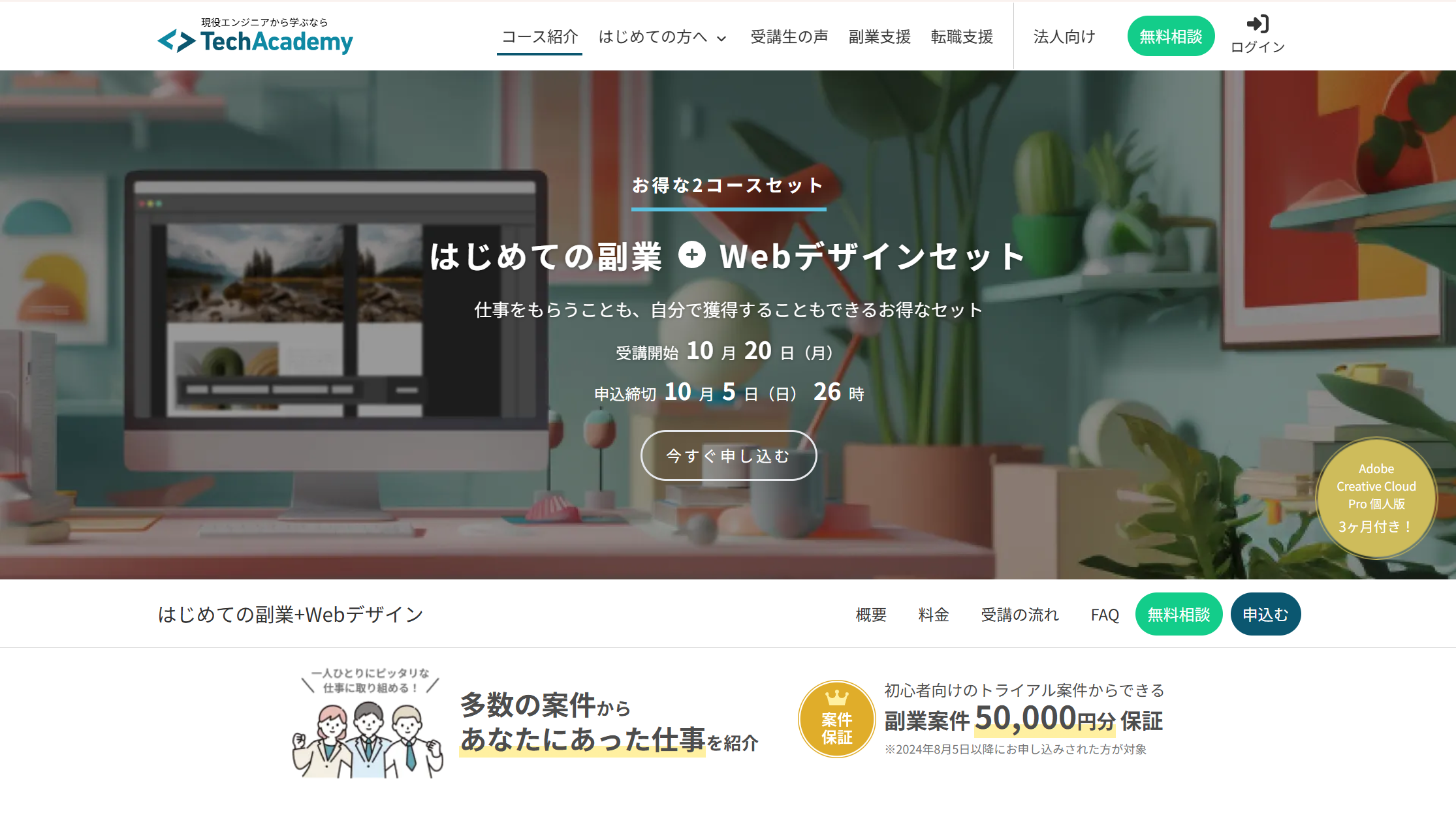 初心者におすすめなプログラミングスクールランキング2位は、TechAcademy(テックアカデミー)です。