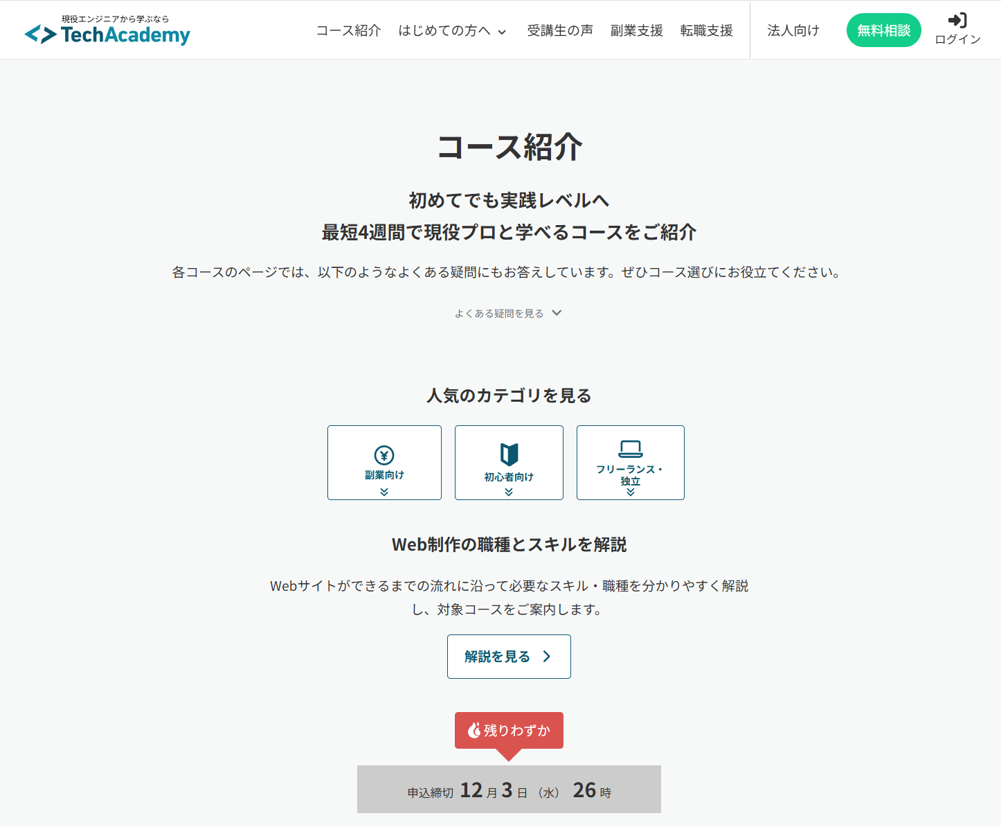 - 1.4 おすすめランキング4位:TechAcademy(テックアカデミー)
